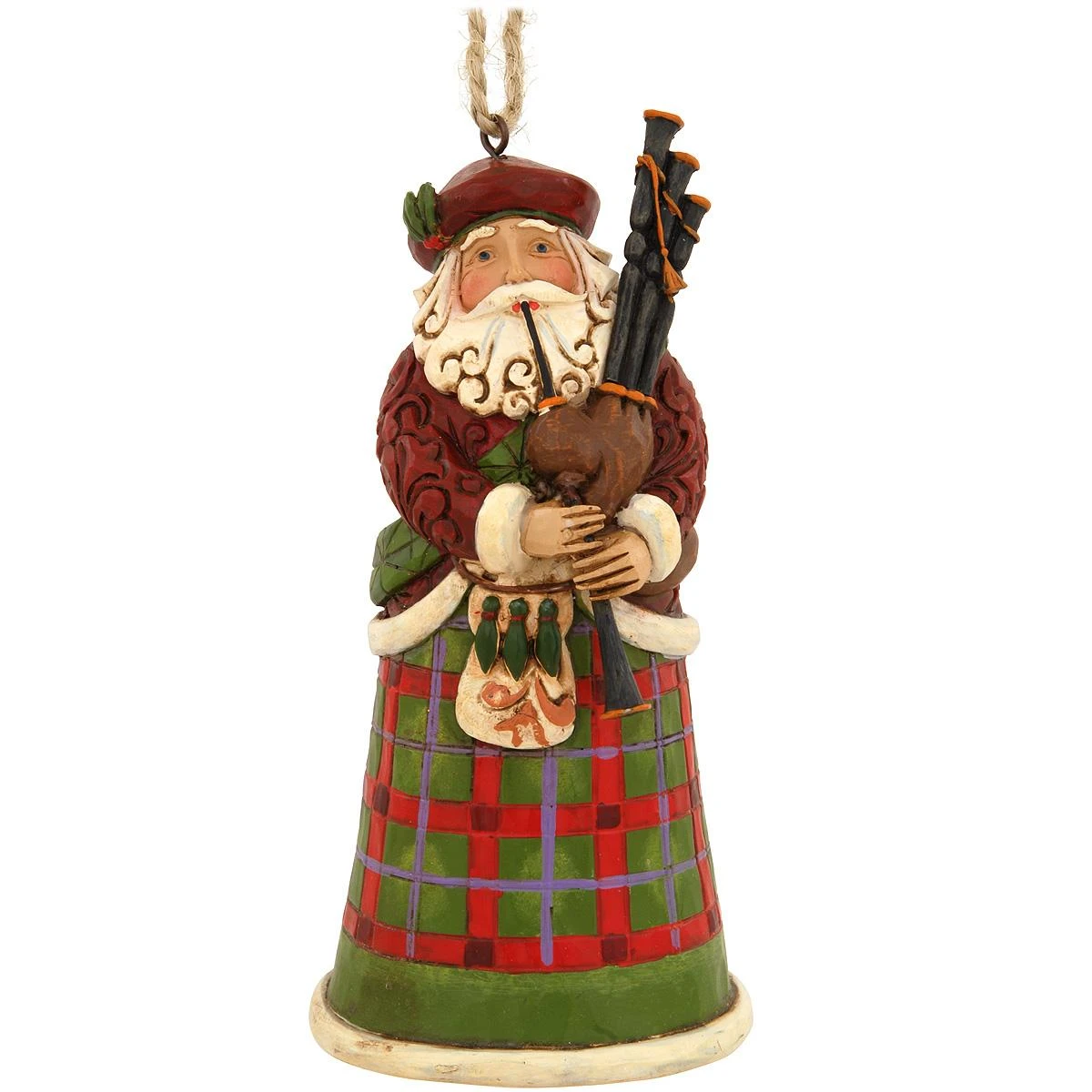 ♪ You take the high road and he’ll take the low road and you’ll be together for Christmas! ♫ Jim Shore cleverly infuses his distinctive mix of vibrant colors and quilt-like patterns into this beautiful ornament that depicts a Scottish Santa dressed in traditional tartan plaid cheerfully playing the bagpipes. Masterfully crafted from stone resin with a “carved wood” appeal, this lively 4½” tall Santa ornament comes ready to hang with a twine cord and is ideal for wishing friends and family a Nollaig Chridheil!