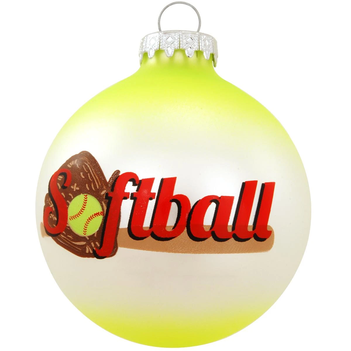 Looking to pitch the perfect keepsake for your softball enthusiast this season? Our vibrant ornament is ace! Exclusively crafted of glass from Hungary, our 3″ tall ornament features a two-tone neon yellow and white finish with a softball and catcher’s mitt standing in place of the “o” in the sentiment “Softball”.