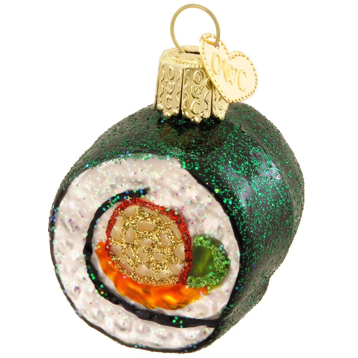 Roll out a bit of the Japanese cuisine on your Christmas tree this year with our scrumptious sushi ornament! With vivid glazes and sparkling glitter accents, this exquisitely detailed sushi roll is 1½” tall and crafted of glass from Old World Christmas®. Even though this sushi roll is not edible, it is sure to satisfy your favorite food connoisseur’s taste buds!