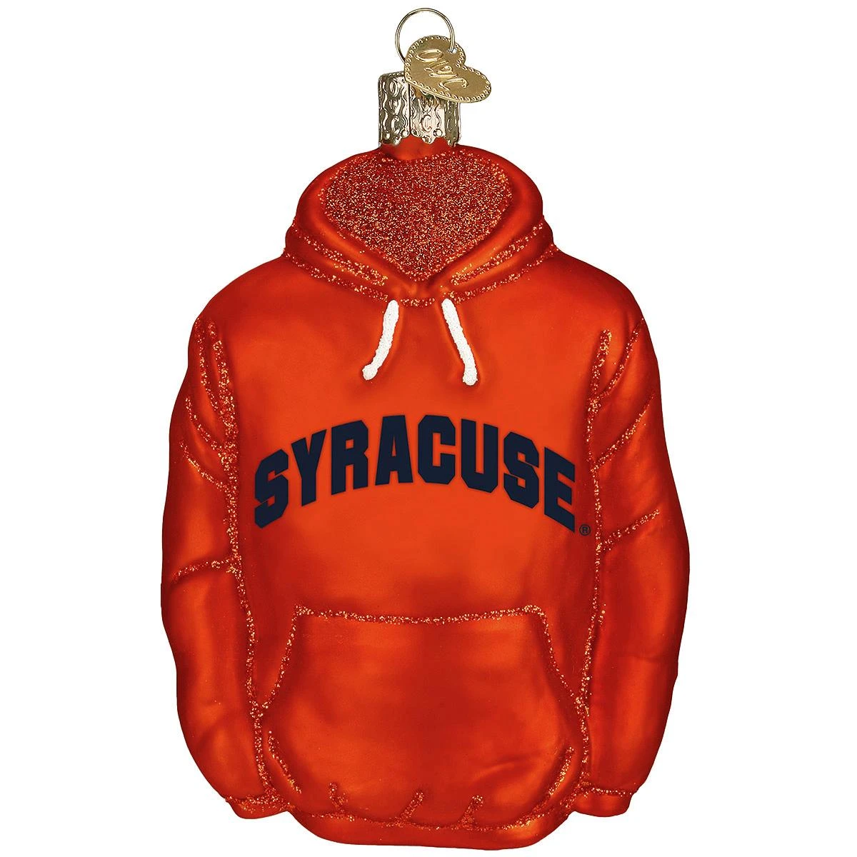 Whether you’re a student, the parent of a student, or simply a fan of Syracuse University®, you’ll enjoy showing your school spirit with this trendy orange hooded sweatshirt ornament. Crafted of glass from Old World Christmas®, this 4″ tall Syracuse University® hoodie ornament is hand-painted in vibrant hues of orange, blue, and white and is accented with sparkling glitter. This exquisitely detailed ornament is an Officially Licensed Collegiate Product® and features the SYRACUSE® name. Treasure the memories of freshman orientation, home games, graduation, and alumni reunions with this fantastic ornament. Go Orange®!