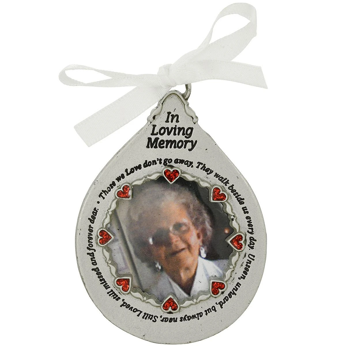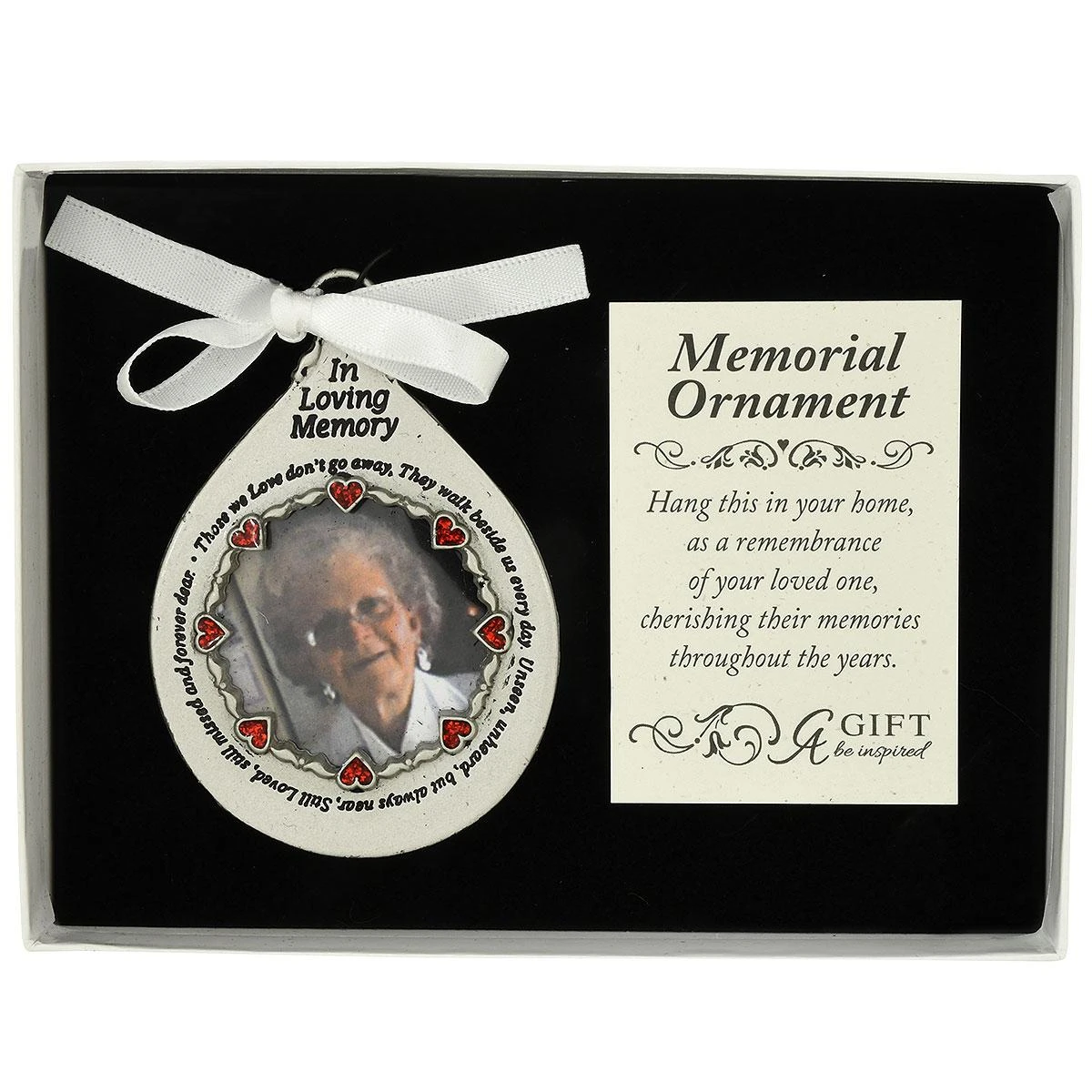 Display this lovely photo ornament on your Christmas tree in remembrance of your dear friend or family member. Designed to hold an approximate 1½” picture of your dear family member or friend, our charming “Those We Love” memorial photo ornament is expertly crafted of pewter. Adorned with a circle of eye-catching red enamel hearts, this lovely oval ornament measures 2¾” tall and comes ready to hang with a white satin ribbon. Sentiment reads: