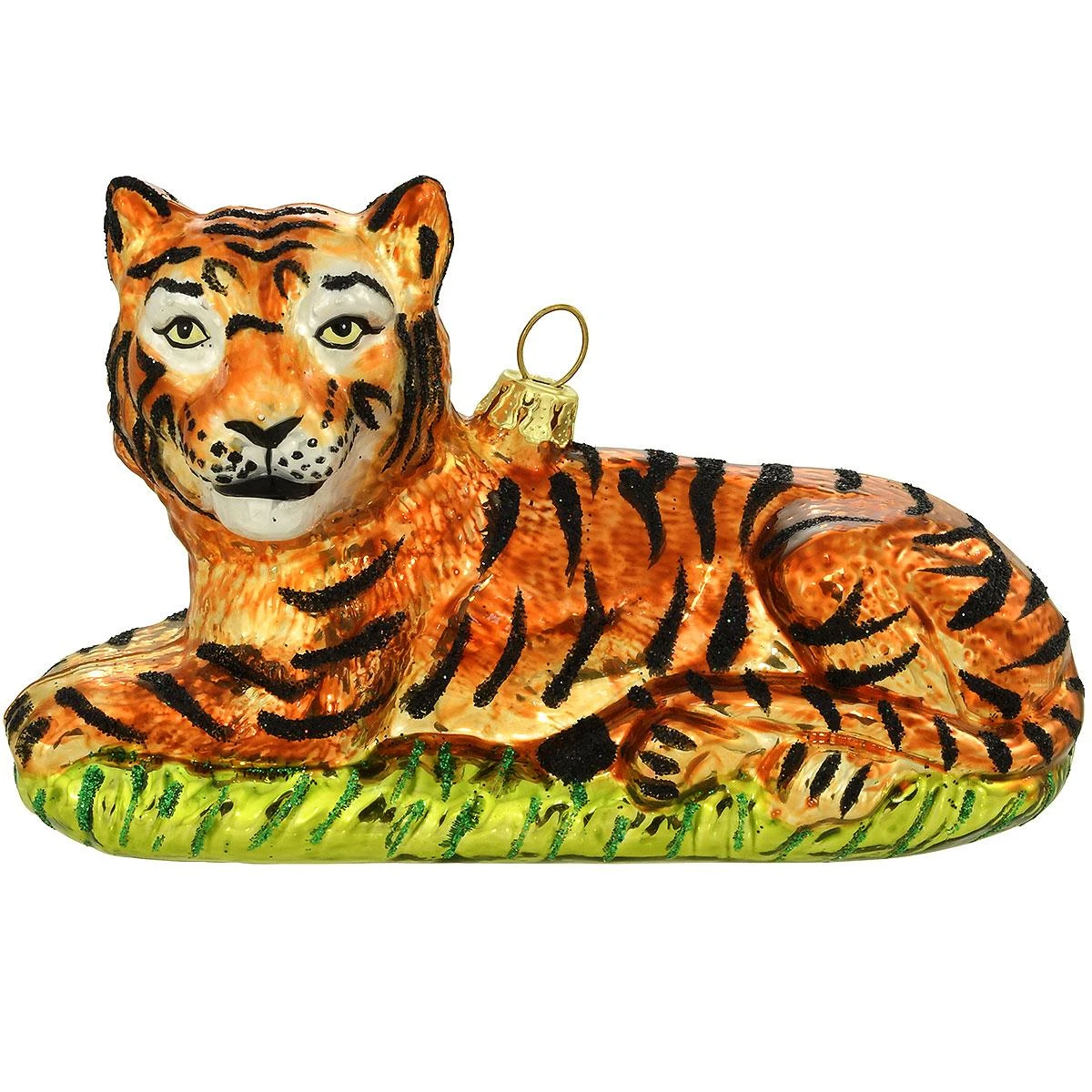 Regarded as the undisputed “King of the Forest”, the tiger knows no natural predators. Its striped coat provides camouflage allowing the supreme hunter to sneak up on prey in the grassy forests of Asia. Artfully crafted of glass with vivid glazes and sparkling glitter accents, our tiger is depicted resting in grass and measures 2¾” tall x 4½” wide. A great gift for your animal lover!