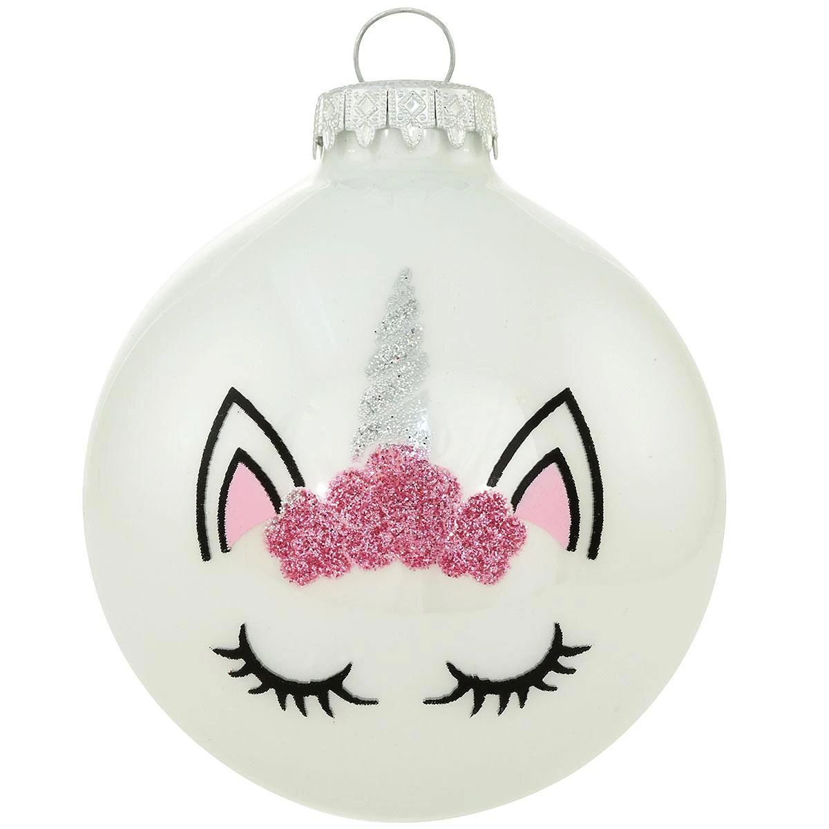 Have you ever come face to face with a unicorn? Crafted of glass exclusively for Bronner’s from Hungary, our 3″ round ornament decorates the opalescent white finish with a whimsical unicorn face wearing a floral crown that shimmers with glittery accents. Fairytale perfect or spirit animal, this unicorn face glass ornament is sure to remind you you’re uniquely be-YOU-tiful!