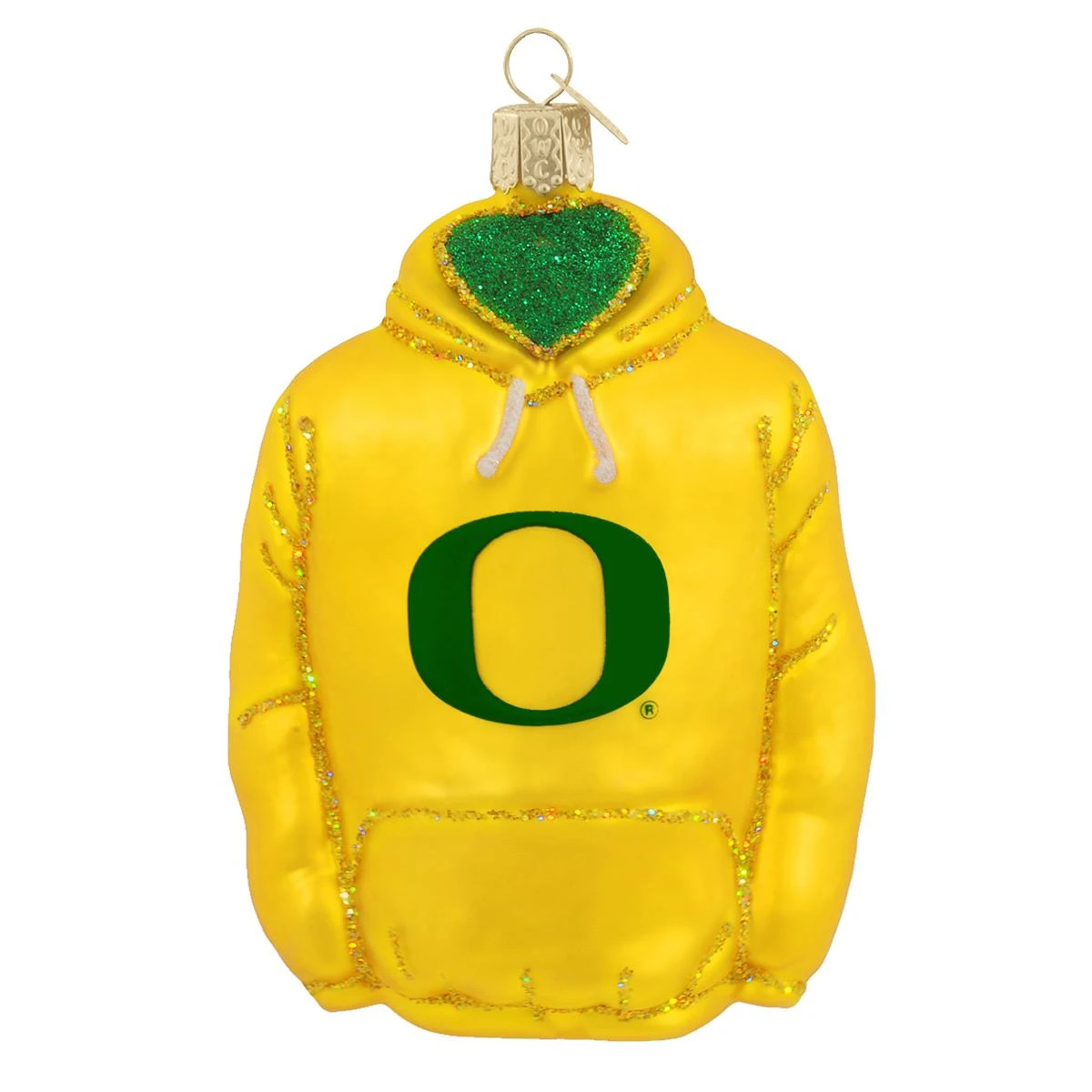 Whether you’re a student, the parent of a student, or simply a fan of the University of Oregon®, you’ll enjoy showing your school spirit with this trendy yellow hooded sweatshirt ornament. Crafted of glass from Old World Christmas®, this 4″ tall University of Oregon® hoodie ornament is hand-painted in vibrant hues of yellow and green and is accented with sparkling glitter. This exquisitely detailed ornament is an Officially Licensed Collegiate Product® and features the Ducks™ school insignia. Treasure the memories of freshman orientation, home games, graduation, and alumni reunions with this fantastic ornament. Go Ducks™!