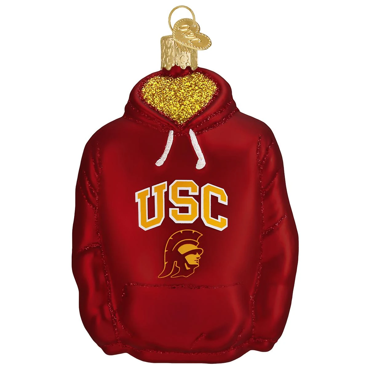 Whether you’re a student, the parent of a student, alumni, faculty, or simply a fan of the University of Southern California®, you’ll enjoy showing your school spirit with this trendy cardinal red hooded sweatshirt ornament. Crafted of glass from Old World Christmas®, this 4″ tall University of Southern California® hoodie ornament is hand-painted in vibrant hues of white, gold, and cardinal red and is accented with sparkling glitter. This exquisitely detailed SoCal® ornament is an Officially Licensed Collegiate Product® and features the iconic Trojans® silhouette and USC®. Treasure the memories of freshman orientation, home games, graduation, and alumni reunions with this fantastic ornament you’ll never outgrow! Fight On™!