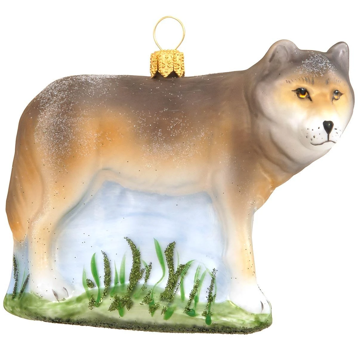 Happy howl-idays! Our majestic wolf ornament is masterfully hand-crafted of glass in Poland with vivid hand-painted glazes and eye-catching glitter accents. Striking a stately pose that’s sure to impress the nature lover on your Christmas list, this leader of the pack measures 3″ tall x 3½” wide.