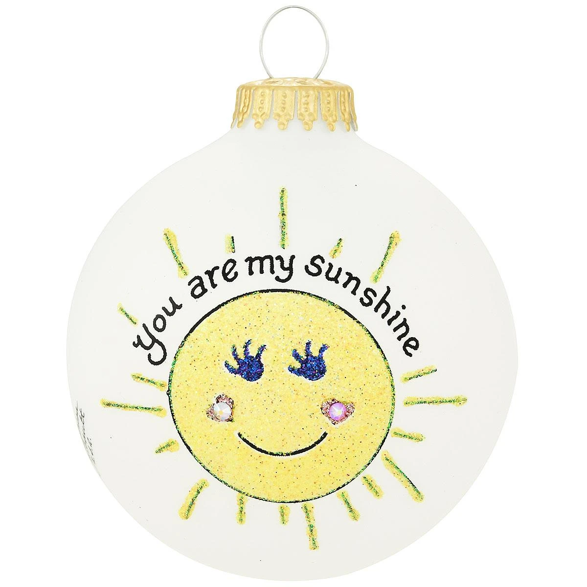 Uniquely crafted with inspired brush strokes and colorful glitter accents, this charming 3¼” tall glass ornament will make a wonderful gift for that special person in your life! Handpainted in the U.S.A. from a design by Teresa Thibault, this unique You Are My Sunshine Hearts Gifts ornament comes attractively packaged for safe storage and easy gift giving.